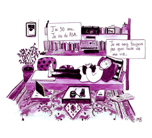 Mes illustrations représentent bien souvent la vie quotidienne, elles font émerger le poétique du chaos et pointent le dysfonctionnement de notre monde avec dérision.